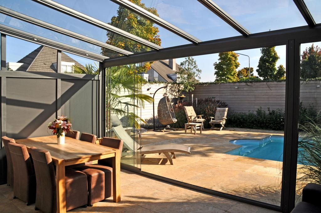 Das ERHARDT T INTEGRAL wirkt durch seine moderne Konstruktion zeitlos und filigran – bei großen und bei kleinen Lösungen – trotz höchster Stabilität und Langlebigkeit. Mit dieser hochwertigen Glas-AluminiumKonstruktion wird Ihre Terrasse zum wettergeschützten Gartenzimmer.